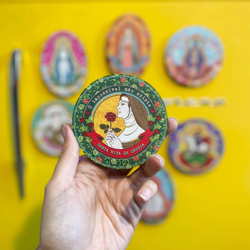 2 em 1, este produto é um quadrinho magnético para geladeira e também porta copos. Para decorar e encantar. Material: MDF.