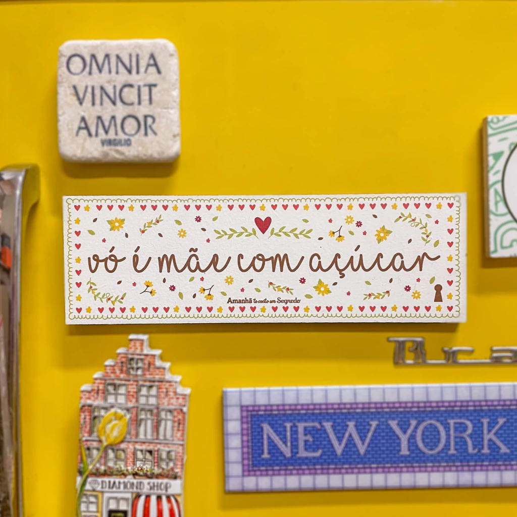 Imã decorativo em MDF. Mede 5x15,5 cm.